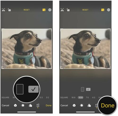 - Выберите область фото, которую вы хотите сохранить, и нажмите кнопку обрезки.