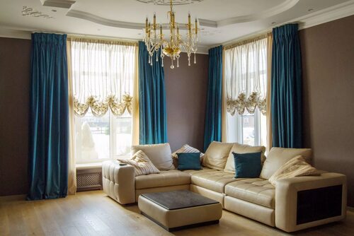 Что касается цветовой гаммы, здесь все зависит от ваших предпочтений и общего стиля интерьера. Шторы могут быть однотонными, иметь принт или быть декорированными вышивкой. Главное, чтобы они гармонично вписывались в общую концепцию дизайна гостиной.