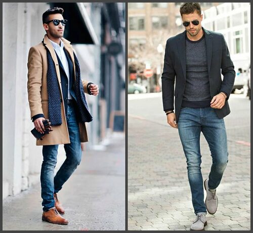Комбинирование джинсов и дерби с другой одеждой