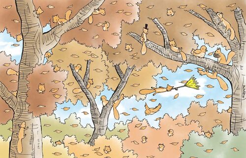 Картина осень на которой три белки