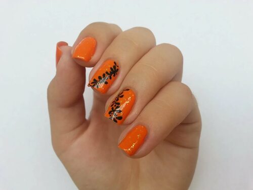 Маникюр оранжевый с черным