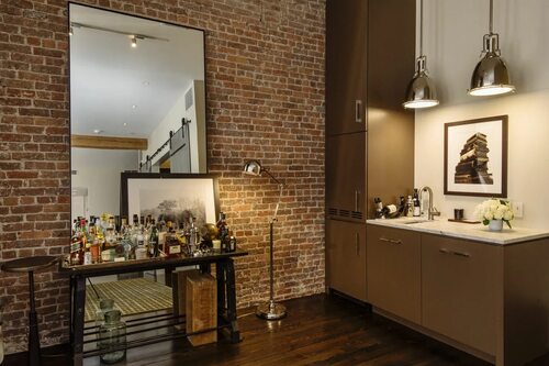 - В ванной комнате: Разместите зеркала в кирпичной кладке над раковиной или в районе ванны. Это добавит элегантности и придаст интерьеру уютную атмосферу.