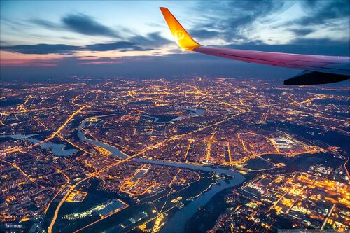 Москва – город, который никогда не спит. Ночью он преображается и становится еще более впечатляющим. Невероятные ярко освещенные здания, переливающиеся огни и бесконечные пробки – все это можно увидеть, полетев над городом на самолете.