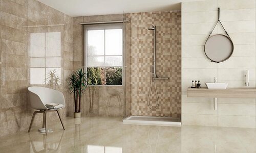 Фото бежевой керамической плитки в интерьере