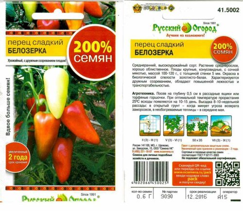 Отзывы о перце Белозерка