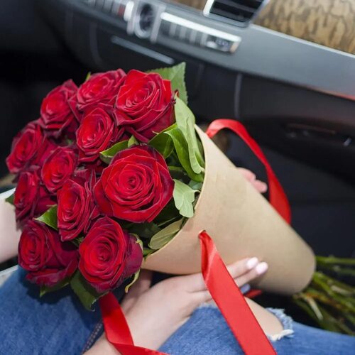 Красные розы в салоне автомобиля