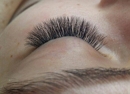 На фото видно, что цвет наращенных ресниц не соответствует естественному цвету ресниц клиента. Это может выглядеть неестественно и вызывать нежелательное внимание. Убедитесь, что специалист учитывает вашу индивидуальность и подбирает цвет, соответствующий вашим ресницам.