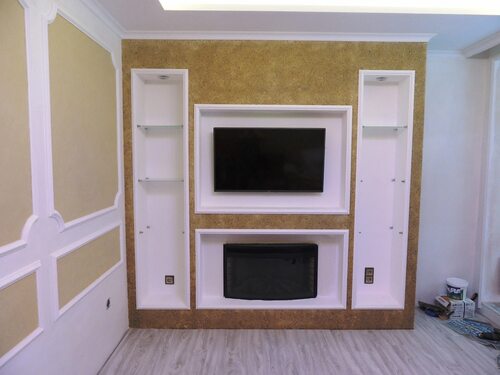 Ниша телевизора штукатурка декоративная