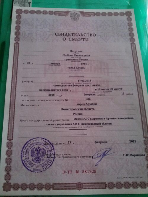 Фотографии свидетельства о смерти