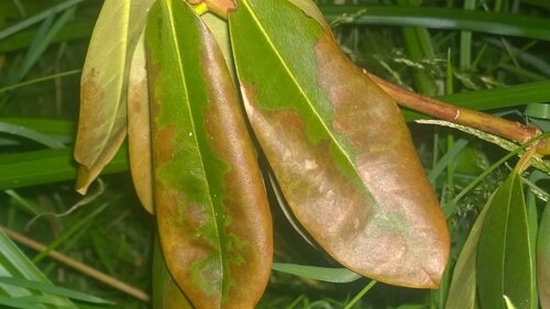 Ржавчина - это еще одна распространенная болезнь рододендронов, вызванная грибком Pucciniastrum epilobii. Она проявляется в виде оранжевых пятен на листьях и стеблях. Для лечения ржавчины рекомендуется удалить пораженные части растения и обработать его специальным препаратом.